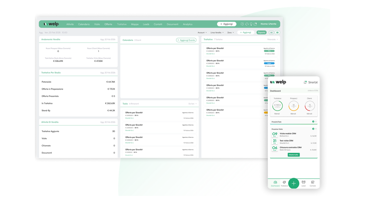 Welp è una piattaforma CRM progettata per supportare le aziende nella gestione delle relazioni commerciali e nell’organizzazione delle attività di vendita. Integrato all’interno dell’ecosistema digitale aziendale, un CRM come Welp consente di strutturare i processi commerciali, tracciare le opportunità e trasformare i dati in decisioni operative.