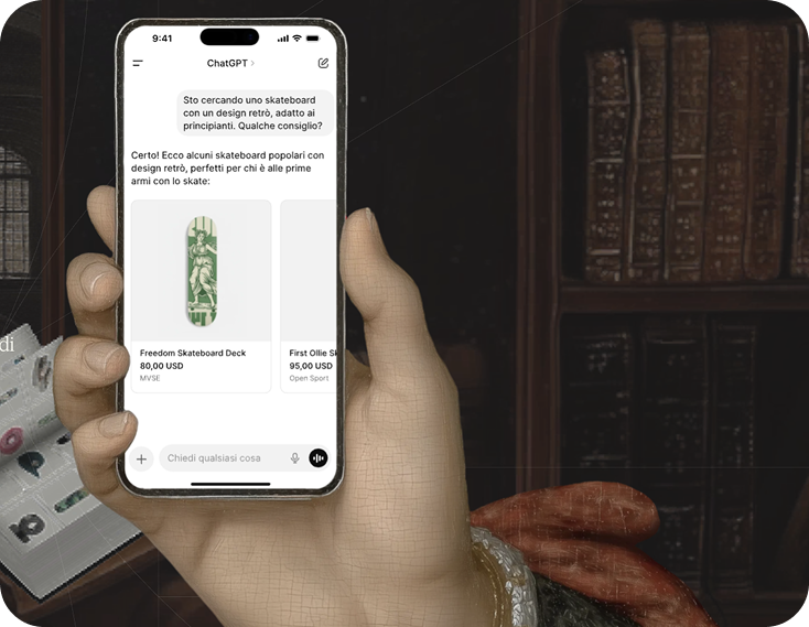 Il modo in cui i clienti scoprono e acquistano prodotti sta cambiando rapidamente. Con Shopify Agentic Storefronts, la vendita esce dai confini del sito eCommerce tradizionale e si sposta direttamente nelle conversazioni AI. I prodotti diventano scopribili e acquistabili all’interno di chat AI come ChatGPT, Copilot e Perplexity, trasformando questi ambienti in nuovi canali di vendita attivi. Questo approccio consente ai brand di: