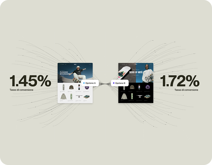 • Rollout: A/B testing e pubblicazione programmata delle modifiche direttamente dal pannello di controllo, per verificare layout, contenuti e funzionalità prima del rilascio.
