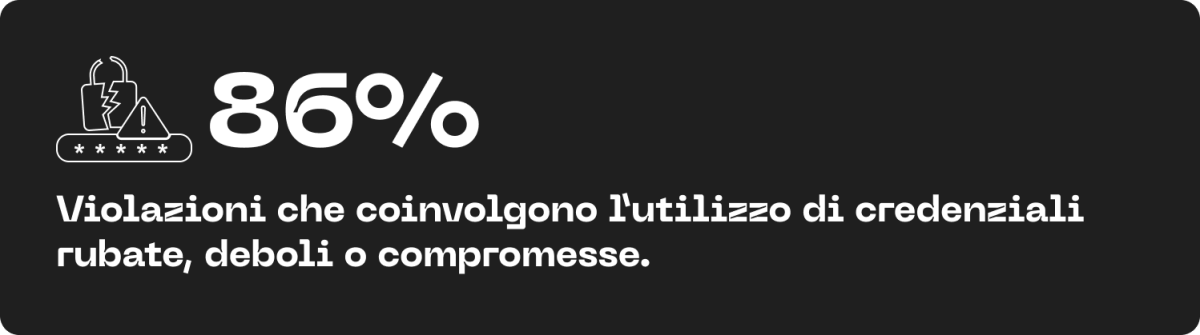 Secondo il Verizon Data Breach Investigations Report 2025, l’86% delle violazioni informatiche analizzate ha coinvolto l’utilizzo di credenziali rubate, deboli o compromesse. Un dato che conferma quanto il problema non sia solo tecnico, ma anche comportamentale.