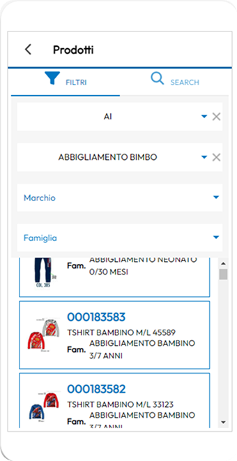 Abbiamo sviluppato un’app full custom, distribuita su iOS e Android, progettata per supportare l’intero i processi del canale wholesale abbigliamento. L’app è basata sull’eCommerce B2B dedicato, con funzionalità pensate per l’utilizzo sul campo, con l’integrazione della lettura barcode da scaffali, o durante la campagna vendite, con la lettura dei barcode dal catalogo cartaceo.
